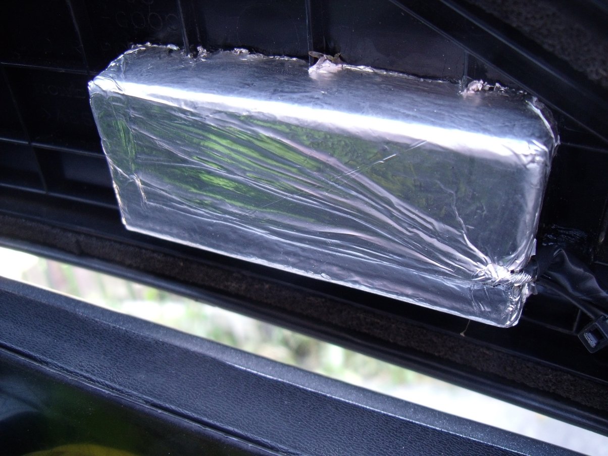 Of course the whole thing would be rapidly shredded by the contents of the glovebox so I found an electronics project box that was a good fit and cut away the ribs on the inside of the door (as you can see in the picture above) to allow me to solvent-weld the box in place: