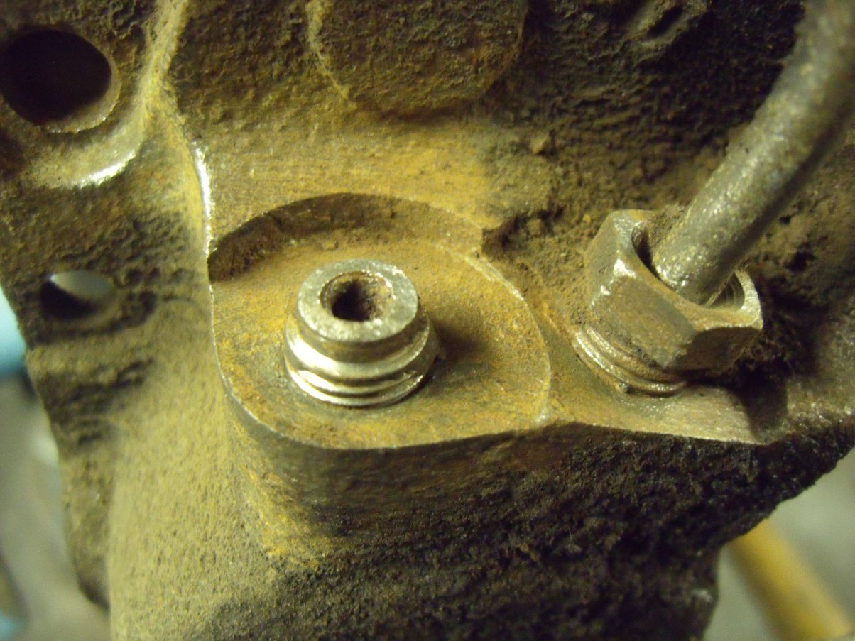 ...so there didn't seem to be much point continuing unless I could get the broken nipple out. I started by wire-brushing the area clean(ish)...