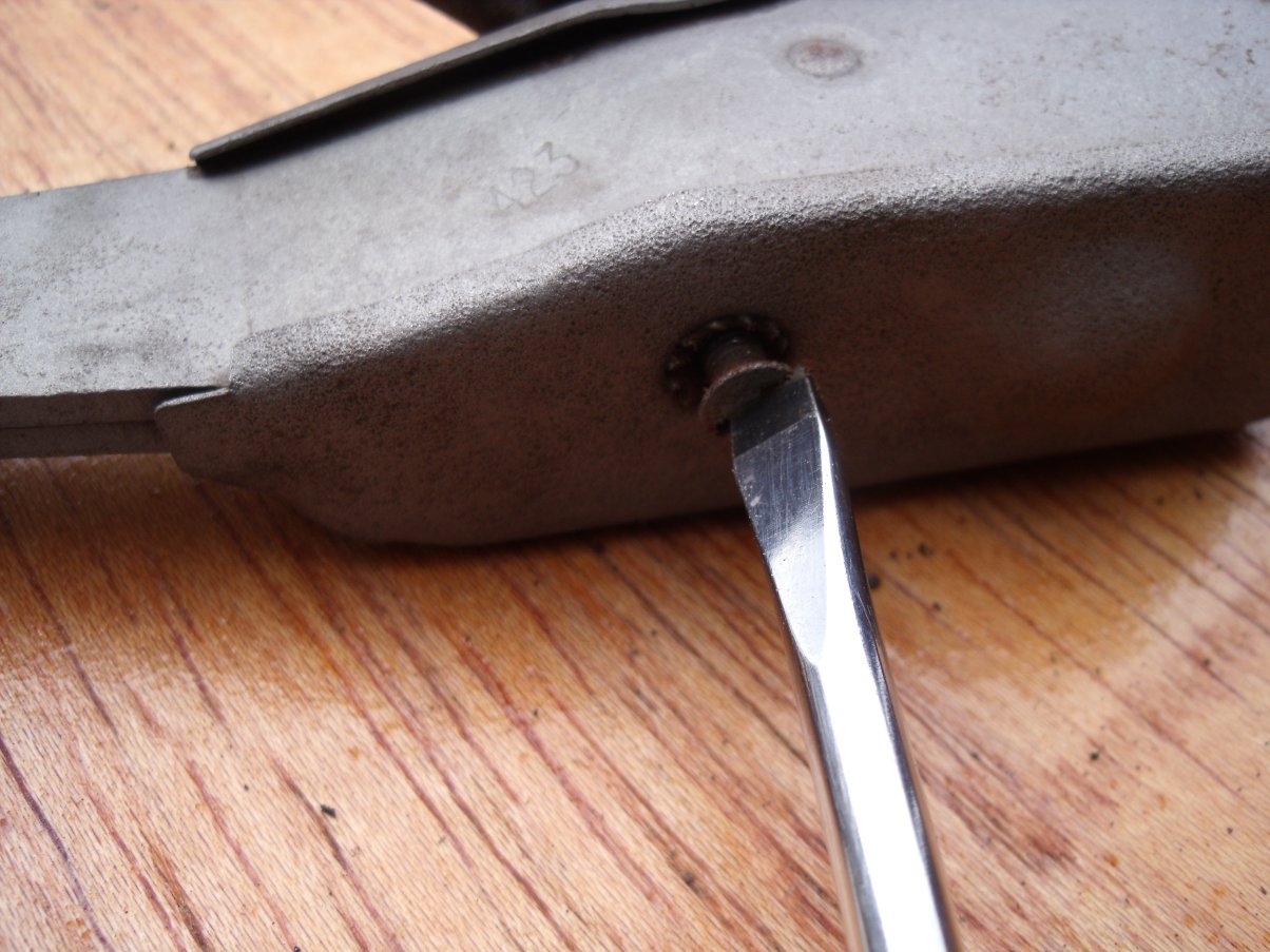 This screw secures the dust covers over the self-adjusting mechanism: