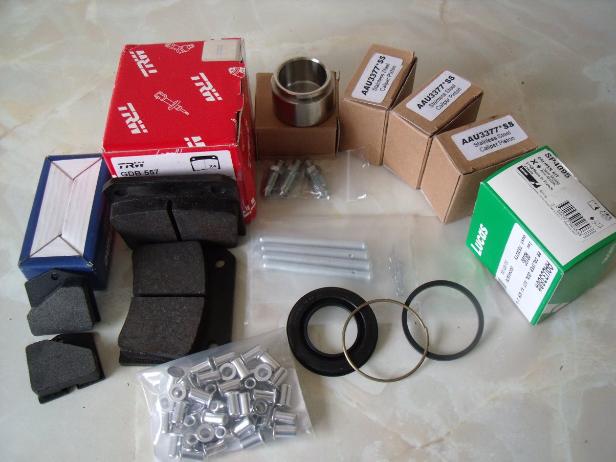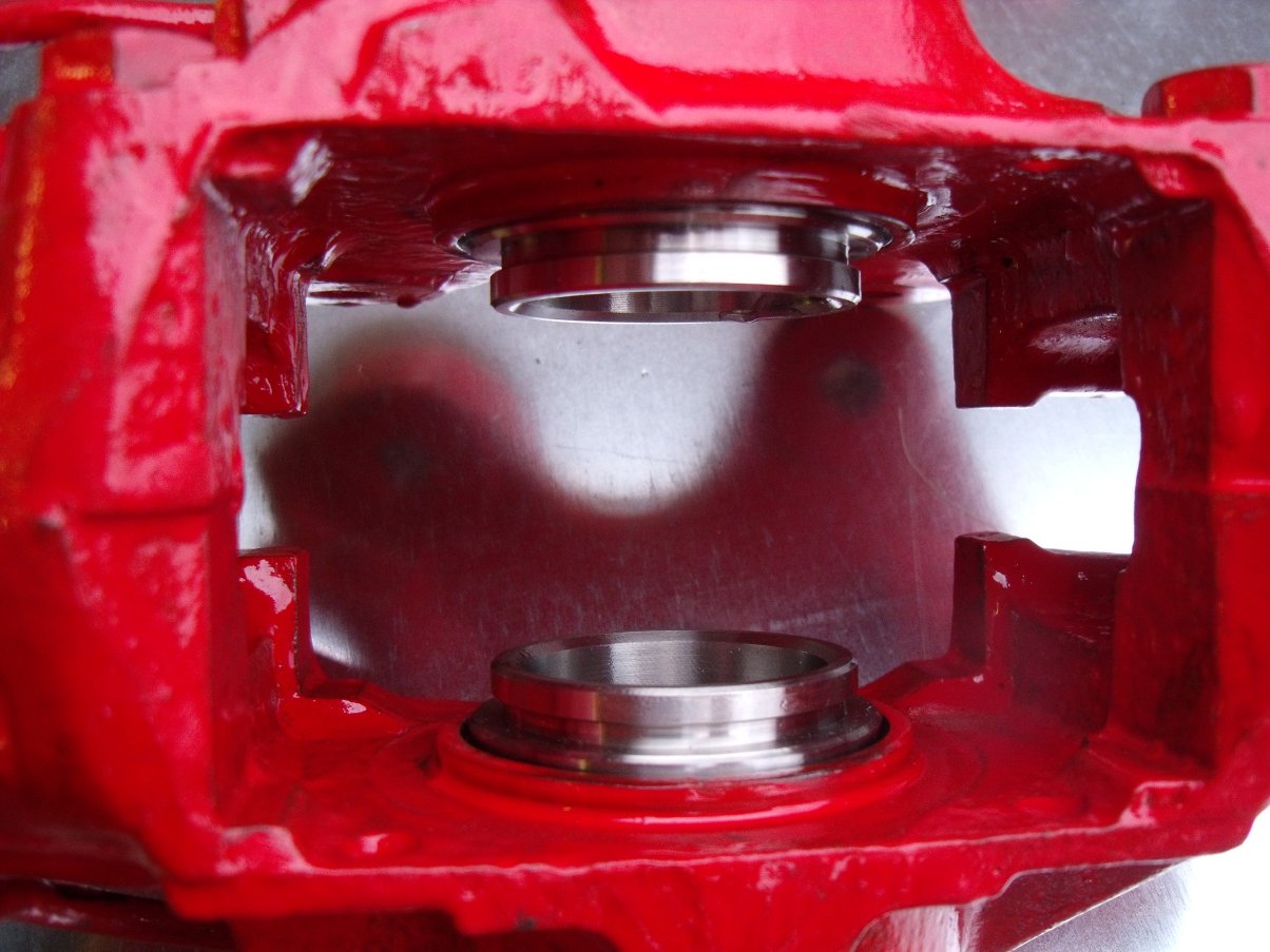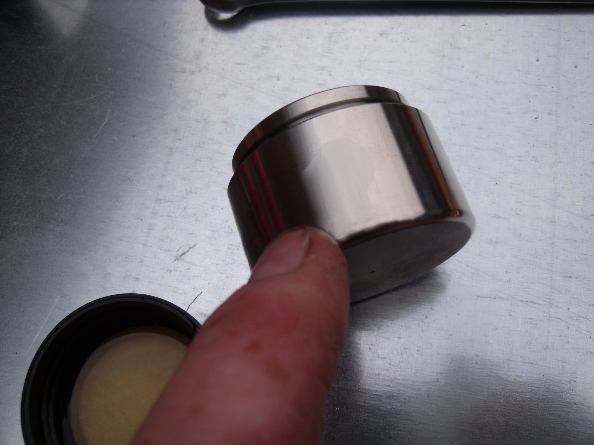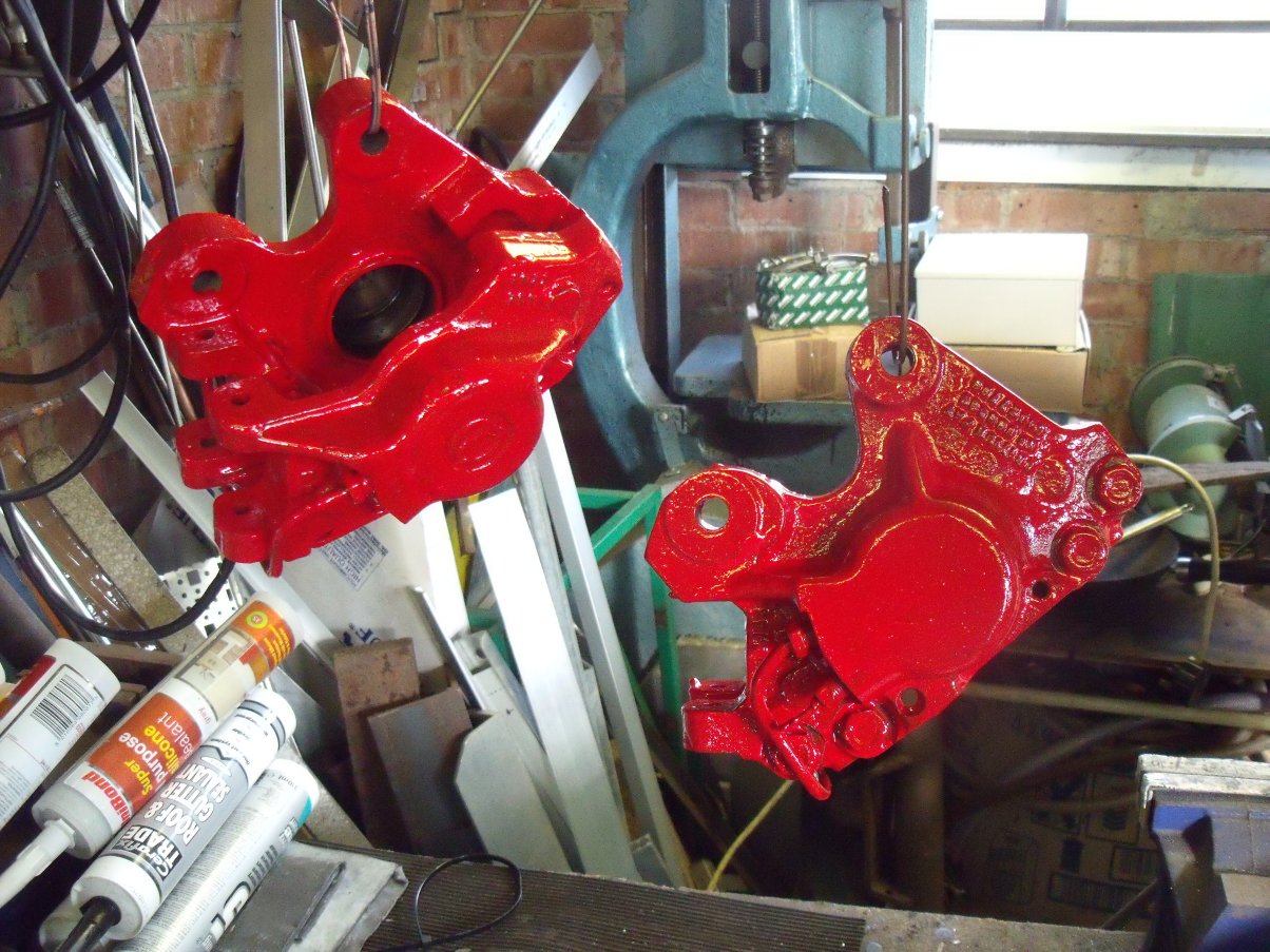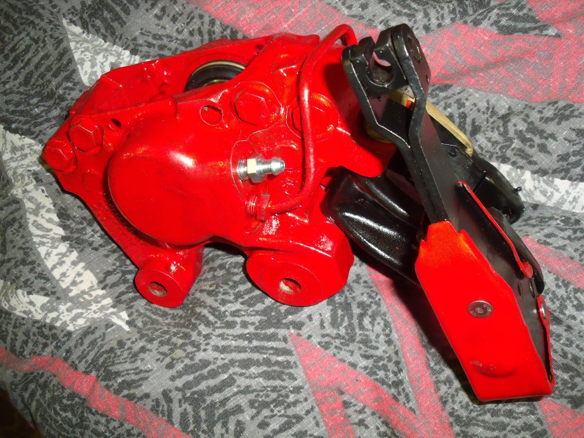 ...or brushed with Halfords brake caliper paint. I wasn't that impressed with its coverage, even after three coats. Note that pistons and seals have been removed: