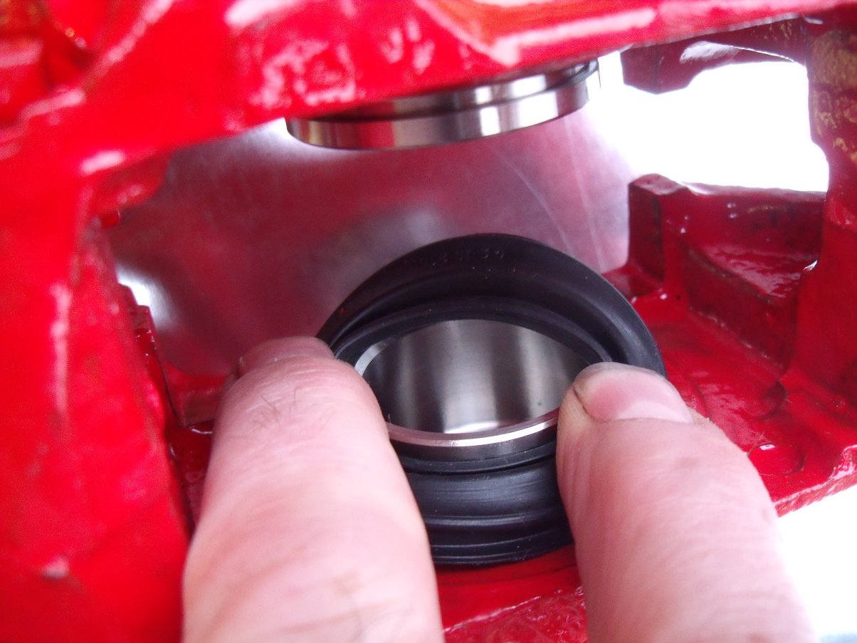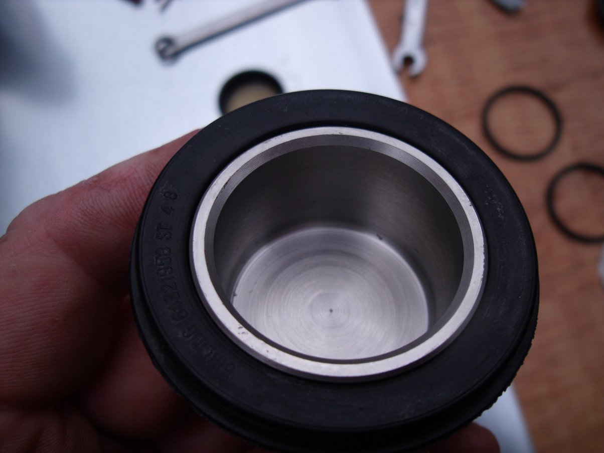 ...installed the seals to the pistons, taking care to get the lip into the piston groove nice and square: